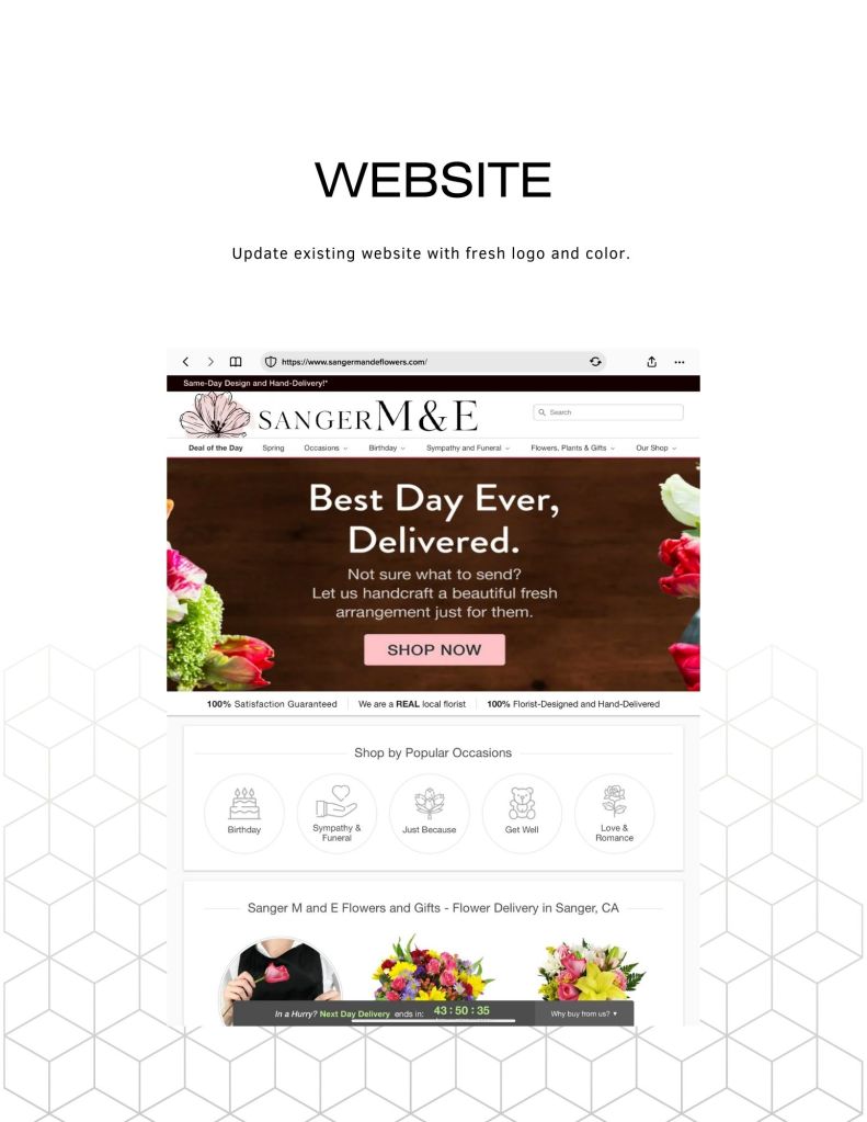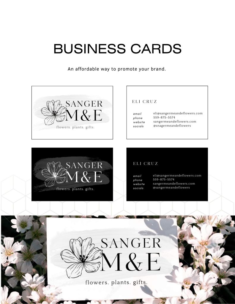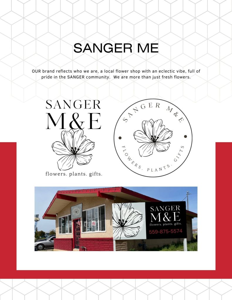 Sanger M & E Flowers brand should communicate that they are small and cozy, not your everyday big flower shop. This means that they not only offer fresh flowers, but gifts and plants, but also will make a customer feel at ease. They mark occasions with flowers and gifts, from birth until death, which makes them intimately connected to the community of Sanger.