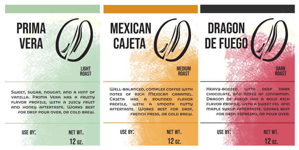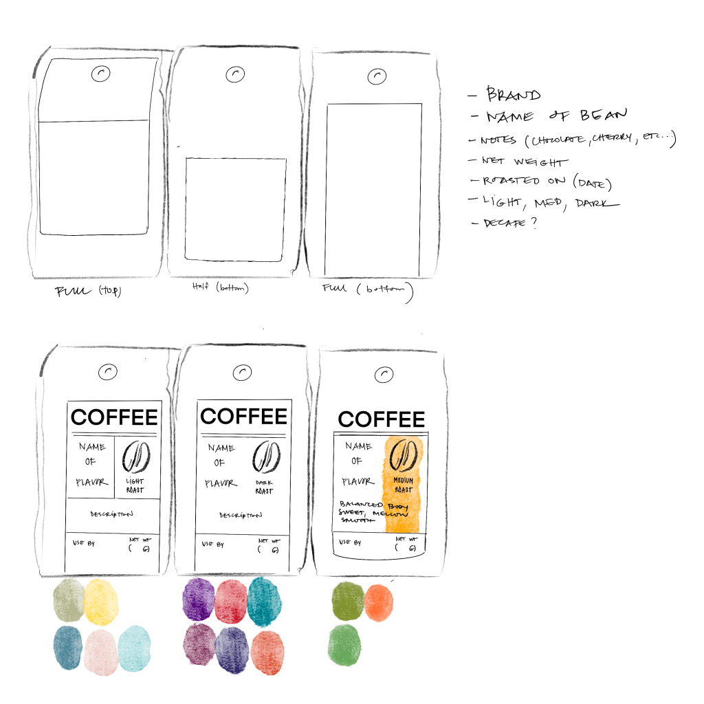 The process: The coffee bean was hand drawn in Procreate, then taken into Illustrator to be made into vector art. The label was then taken back into PS to add the final swatch of paint. In the future, when I am not under a deadline for a project, I would like to watch more videos on how to manipulate Illustrator art to look a little more painterly.