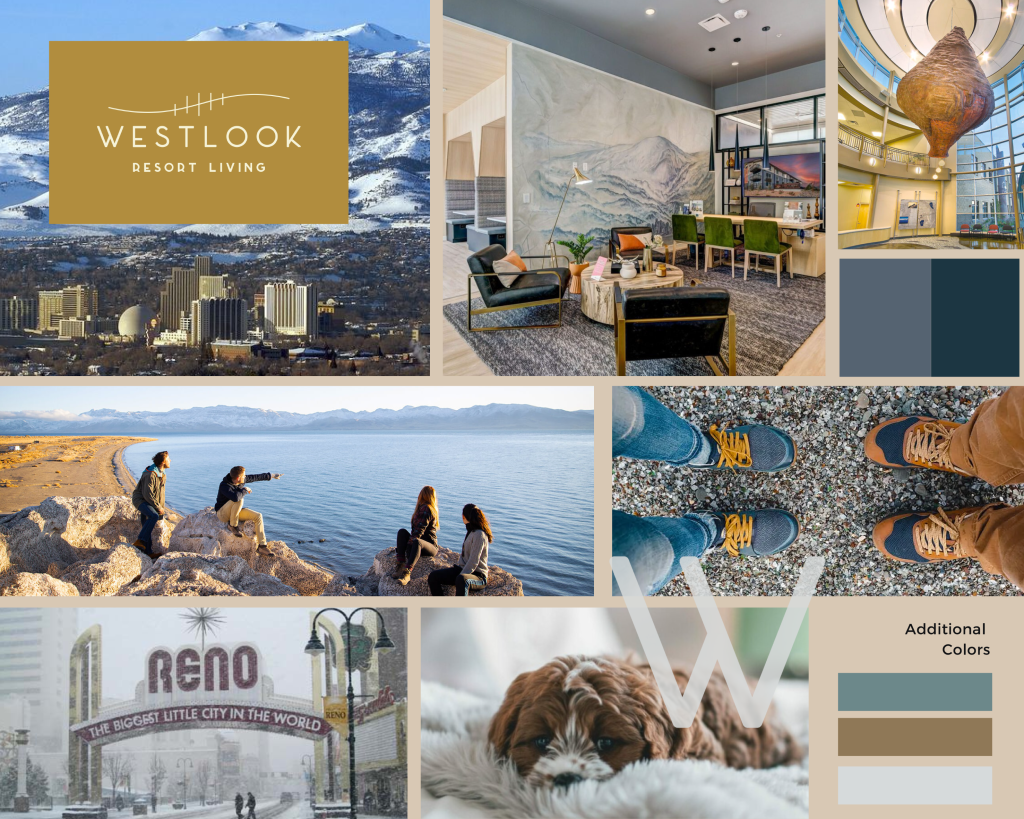 Concept three was chosen for the brochure design, the blend of warm & cool colors highlight the wide range of experiences that come from living at Westlook, Reno. In addition, the combination of images from the complex represent the modern luxury of the apartment, with warm colors and textile additions, blending urban/modern with a warm homey feel. The train tracks across the street, invoke a spirit of exploration that is readily available to residents who want to explore outside the city. However, downtown Reno, is a reminder that the commute is just a few short minutes away. The brochure strives to encapsulate the blend of convenience, with the experience of getting away from it all. Altogether, the combination of images attempts to create an overall mood of, “a breath of fresh air.”