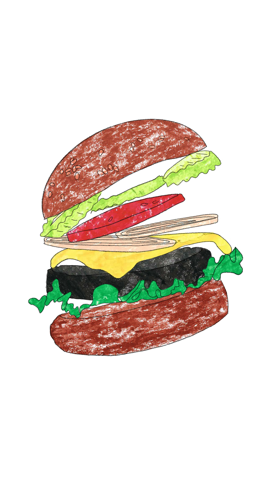 I was excited a to start a new experimental animation project. The idea was to continue blending both analog and digital methods. So, I grabbed the oil pastels and went to work. What a mess—my burger looked like a kindergartener had taken a crayon and scribbled on it. It was ugly. However, in an effort to continue to make something every week, I went back to the original digital animation.